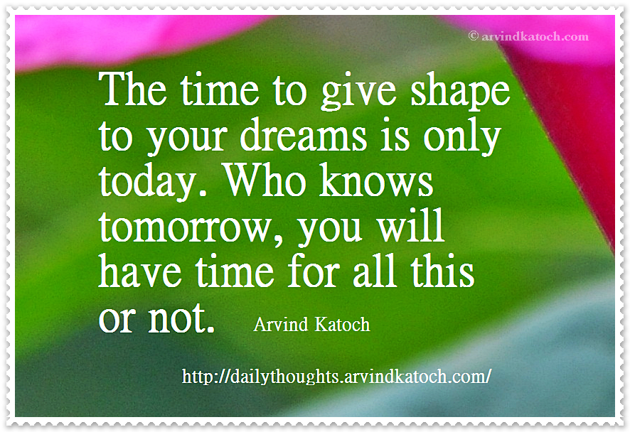 "The time to give shape to your dreams is only today. Who knows tomorrow, you will have time for all this or not. Arvind Katoch"